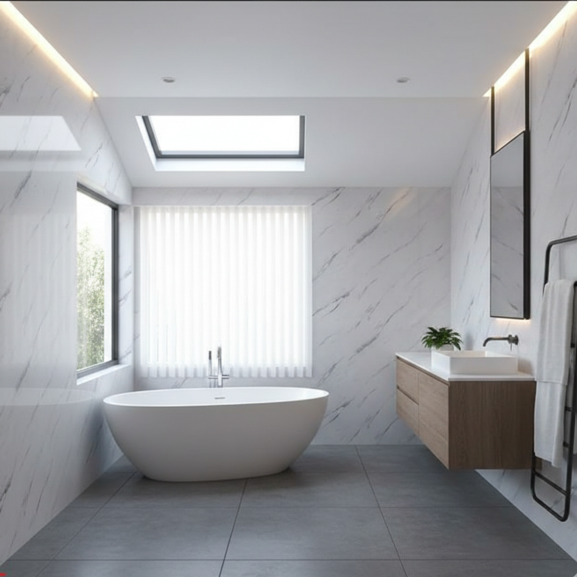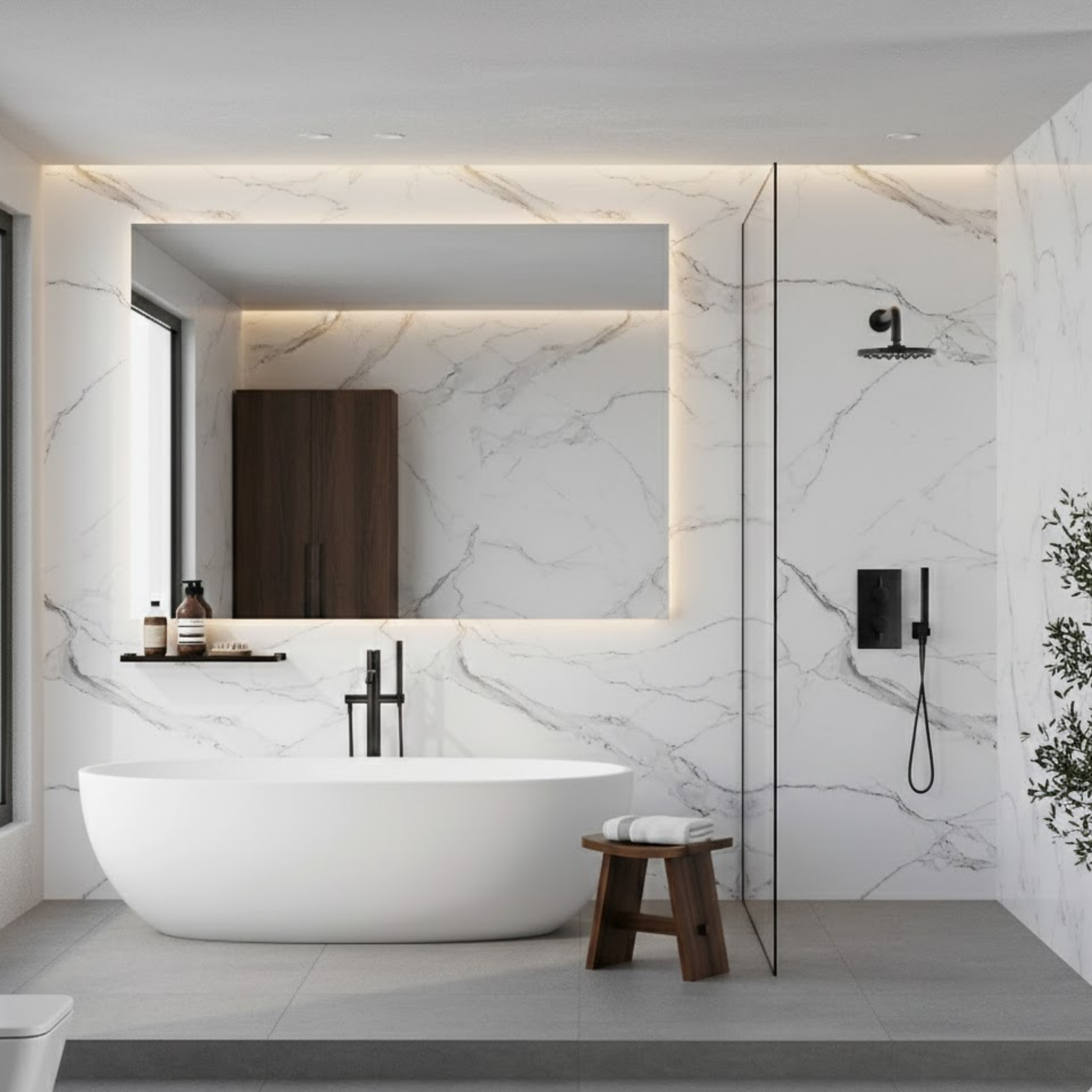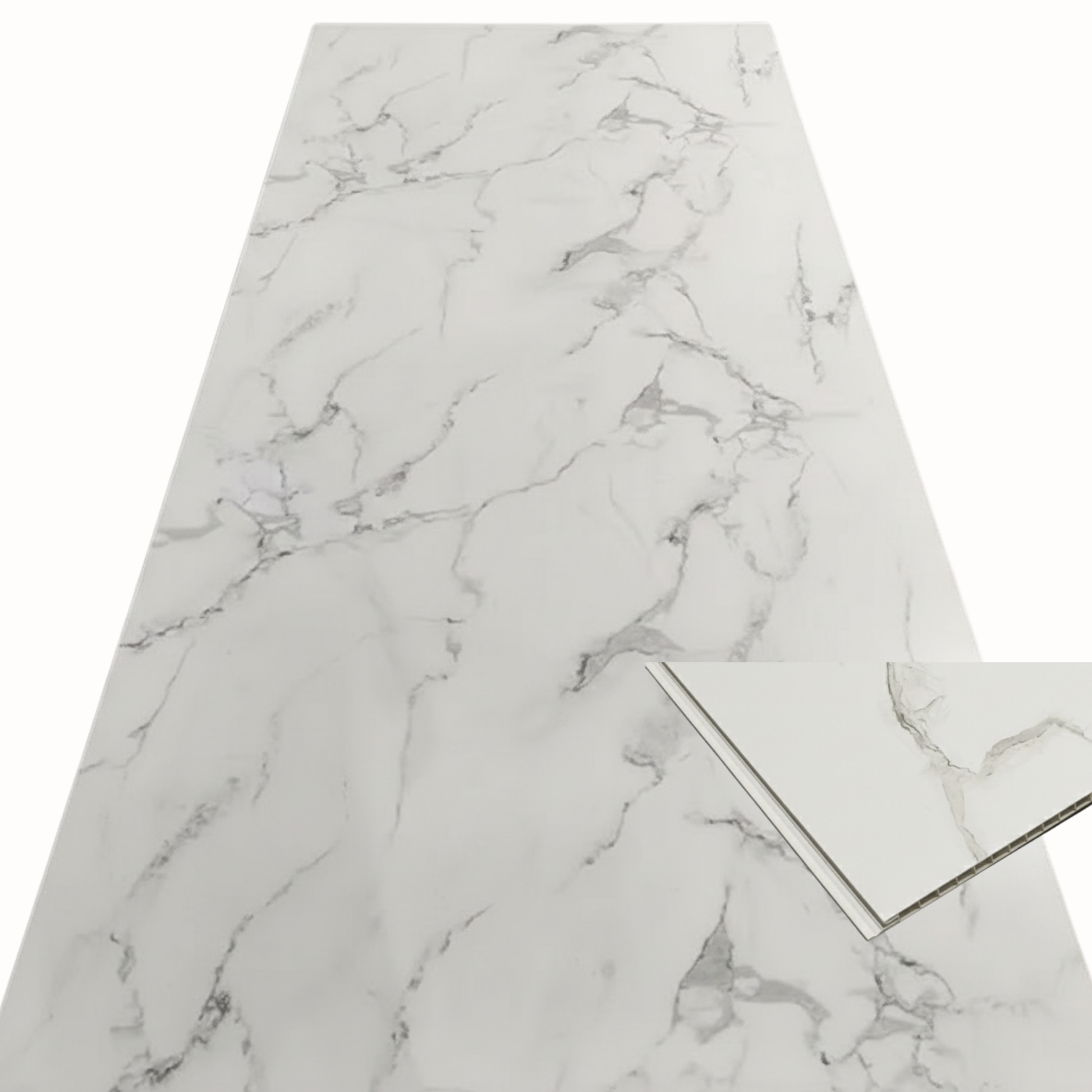 Achieve the luxurious look of authentic Italian Carrara marble without the cost, mess, or maintenance. This premium 10mm PVC shower panel delivers sophisticated style with its pure white base and elegant grey veining—complete with a contemporary soft matt finish that's trending in modern UK bathrooms.